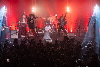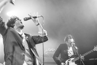 In the middle of the set comes the stand-alone single "The Trenchcoat Museum," released between the two albums. Tonight, it transcends the studio version, morphing into a percussion-heavy rave-up with sharp techno stabs that nod unmistakably to a Herbie Hancock classic. It’s a standout moment that highlights the band’s vision and fearless ambition, pushing their sound into uncharted, exhilarating territory. As the glorious centrepiece of the show, it has everything thrown at it—Smith delivers his most intense performance of the night, while the dancers finally get their moment, stretching their choreography into a dynamic, full-throttle display that compliments the whole production.